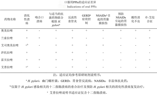 六.质子泵抑制剂(PPIs)适应症的差异[2]